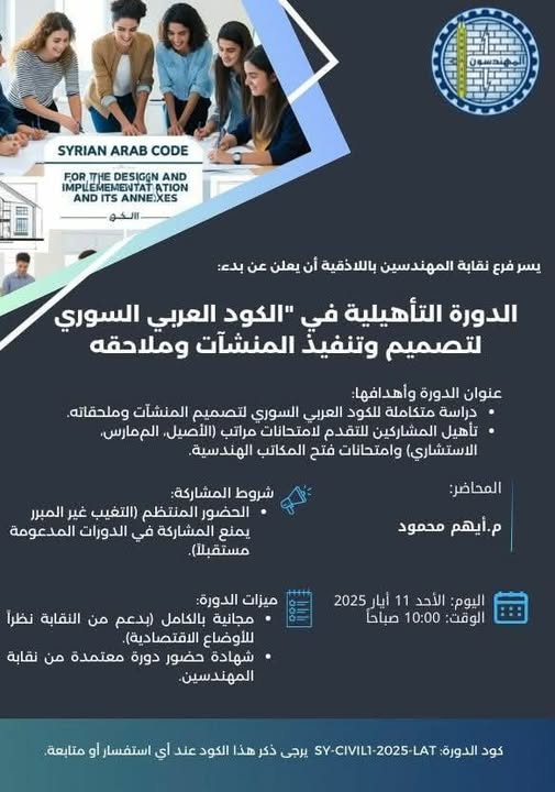 الدورة التأهيلية التخصصية للمهندسين المدنيين اختصاص(طبوغرافيا_بيئة_جيوتكنيك_إداراة_طرق ومواصلات)